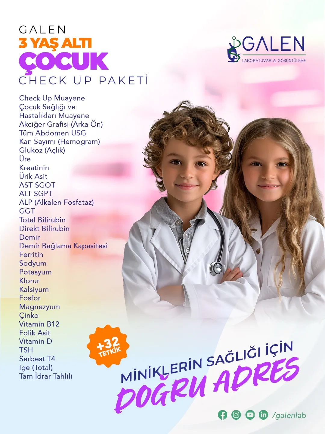 GalenLab, İstanbul’da hem laboratuvar hem de görüntüleme alanında kapsamlı sağlık hizmeti sunan lider merkezlerden biridir. Bilimsel titizlik, insan odaklı yaklaşım ve ileri teknolojik altyapı ile hastalarımıza güvenli, doğru ve hızlı teşhis imkânı sağlıyoruz. 2000’li yıllardan beri sağlık alanında edindiğimiz deneyim, işini tutkuyla yapan profesyonel kadromuzla birleşiyor. Laboratuvar analizlerimizden radyolojik görüntülemeye kadar her adımda kalite standartlarını önceliğimiz haline getirdik. Amacımız; her hastaya saygı duyan, şeffaf süreçlerle çalışan bir sağlık merkezi olmak.
